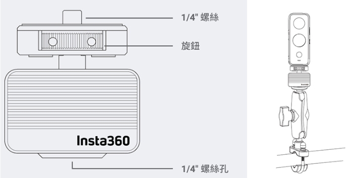 將減震器底部1/4螺孔外接機車配件套餐中的萬象手把支架(需另外購買)固定在機車或單車上。
