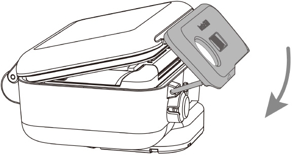 關閉潛水殼時,將上蓋扣住潛水殼邊緣的橫勾上,接著按下直至卡扣鎖好(聽到喀嗒聲)。