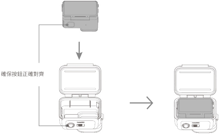 確保以正確的方向置入,以讓鏡頭及按鈕對準潛水殼的對應位置。