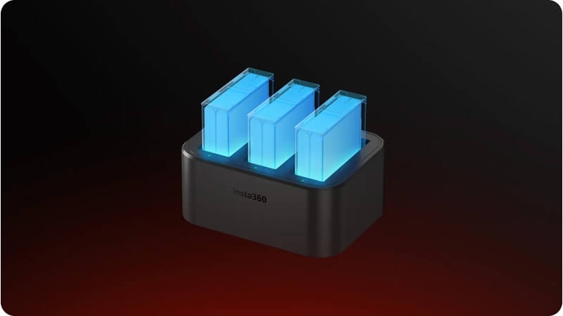 2. 建議使用12V/3A電源轉接器。快速充電器可以同時為三顆電池充電。它與其他 12V、9V 或 5V USB 轉接器相容。使用 12V/3A 以上的轉接器可能不會提高充電速度。當低於12V/3A時,則無法同時充3顆電池,充電器會智慧選擇先充電的電池。因此,整個充電時間會有所不同。