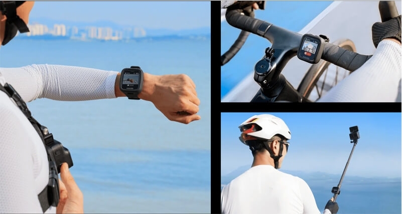 包括腕帶和綁帶,具有充分靈活性。使用腕帶將其佩戴在手腕上,或使用通用帶將其安裝到車把、隱形自拍棒等處。