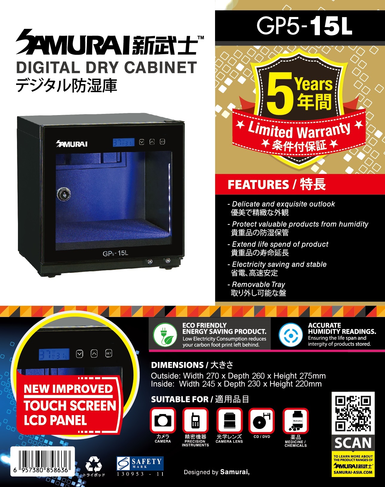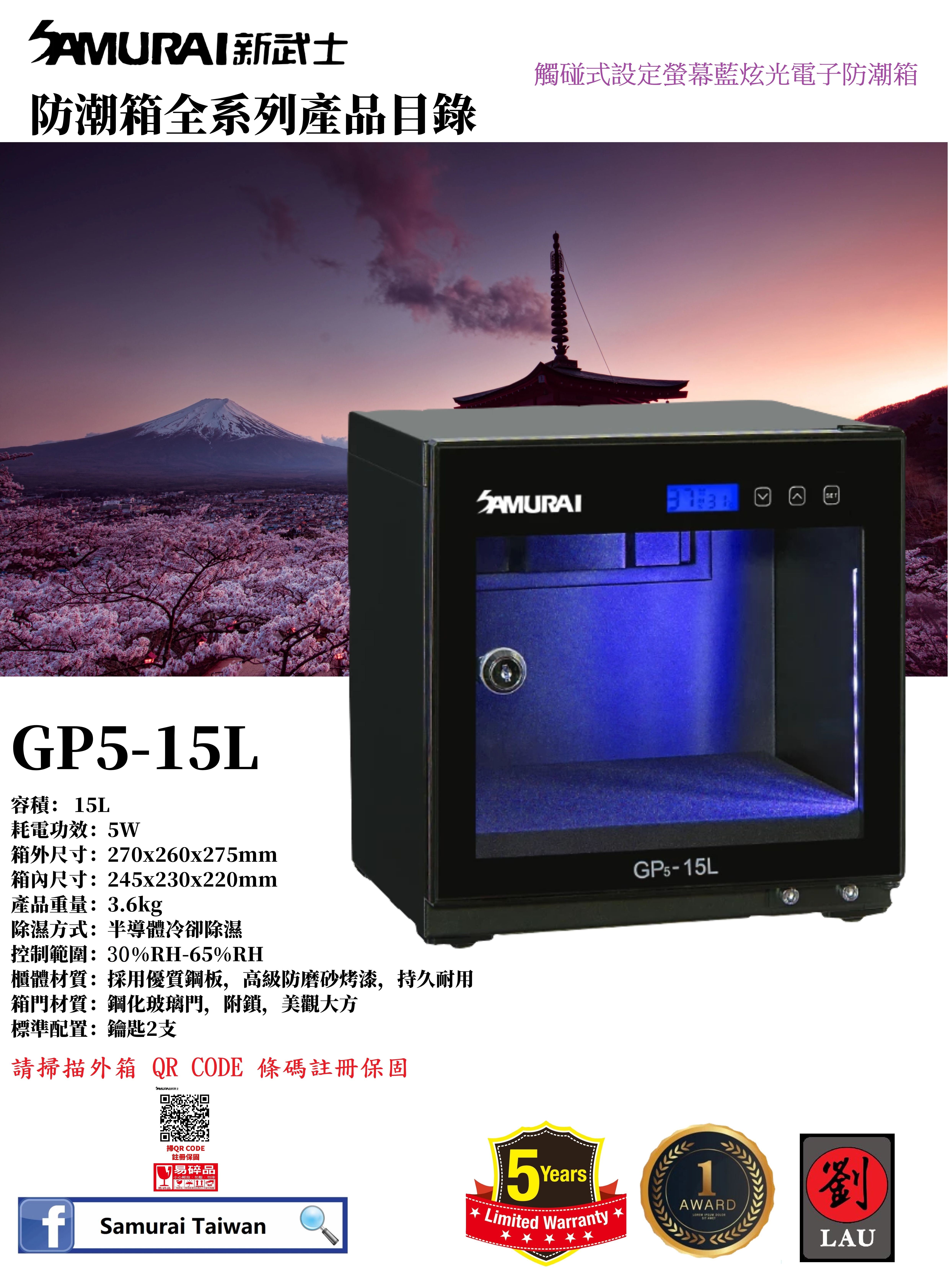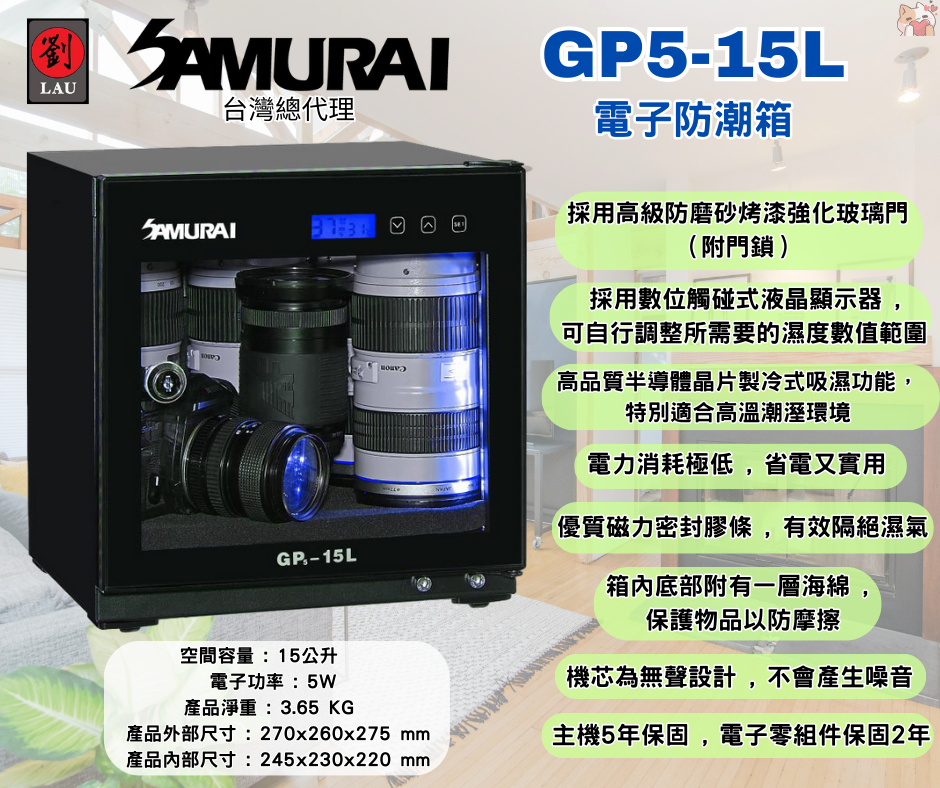SAMURAI GP5-15L 觸碰式設定液晶顯示器電子防潮箱 特點 :