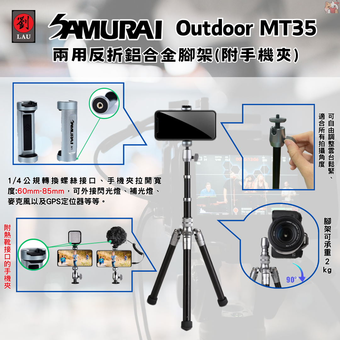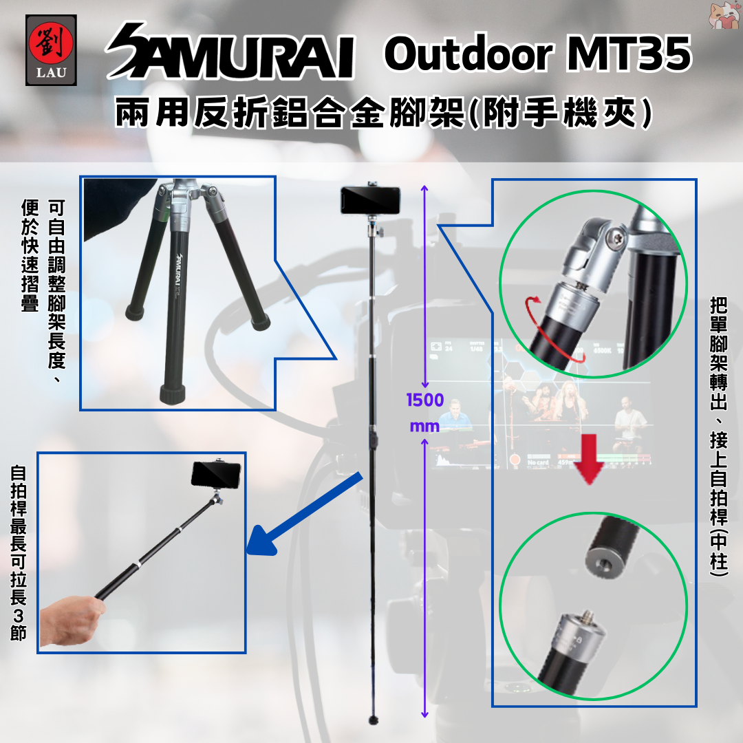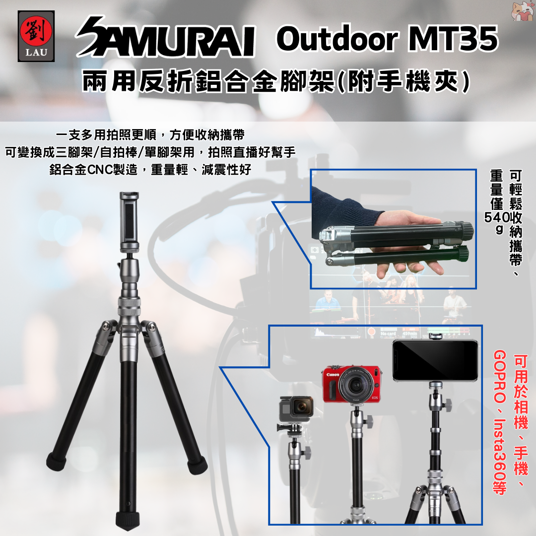 廣泛適用:無論是拍攝專業作品、自拍、還是直播,SAMURAI MT35 絕對是你攝影的得力助手。