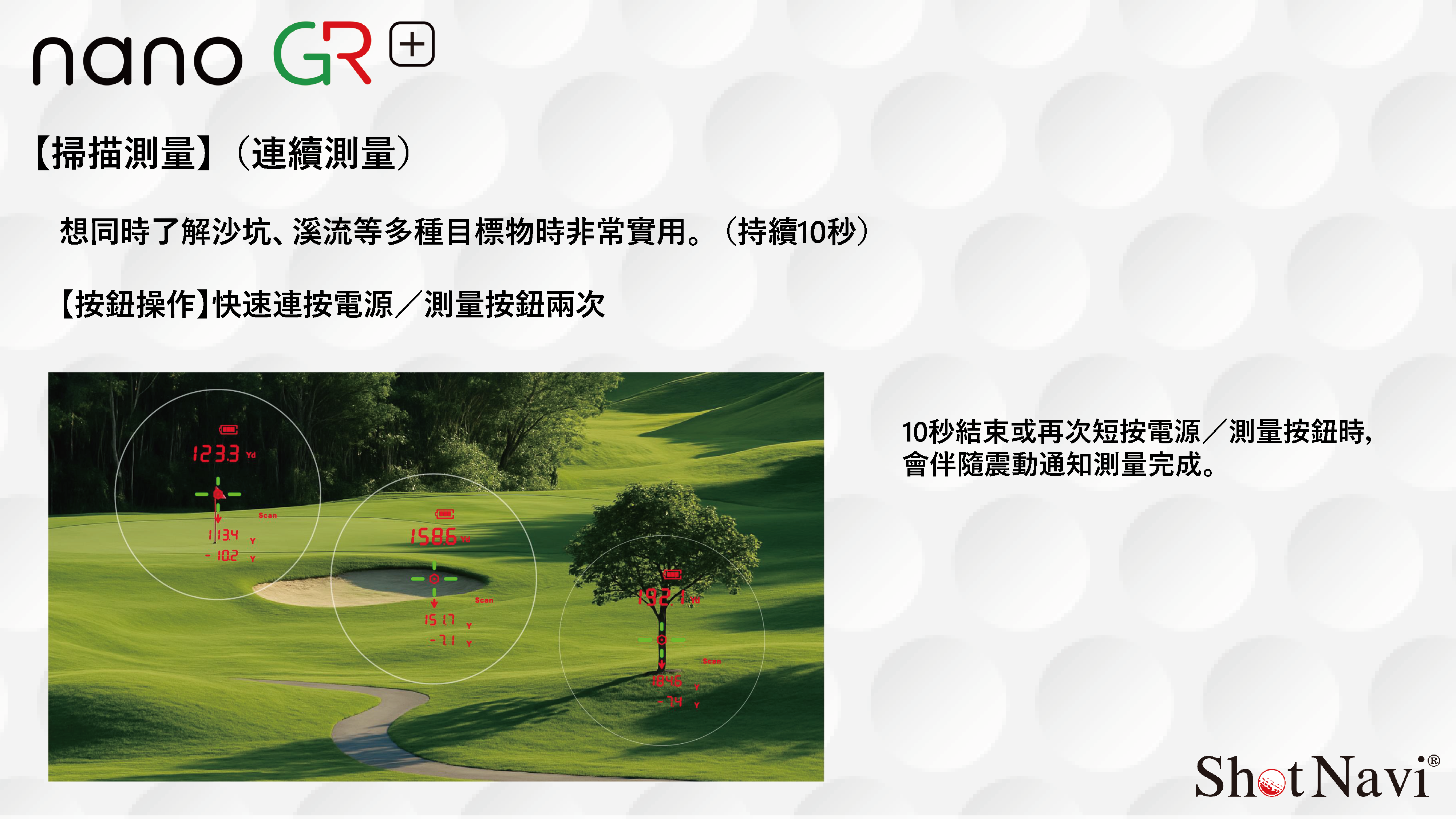 • 不干擾打球節奏,讓測距更無壓力,讓您的高爾夫更加自由自在。