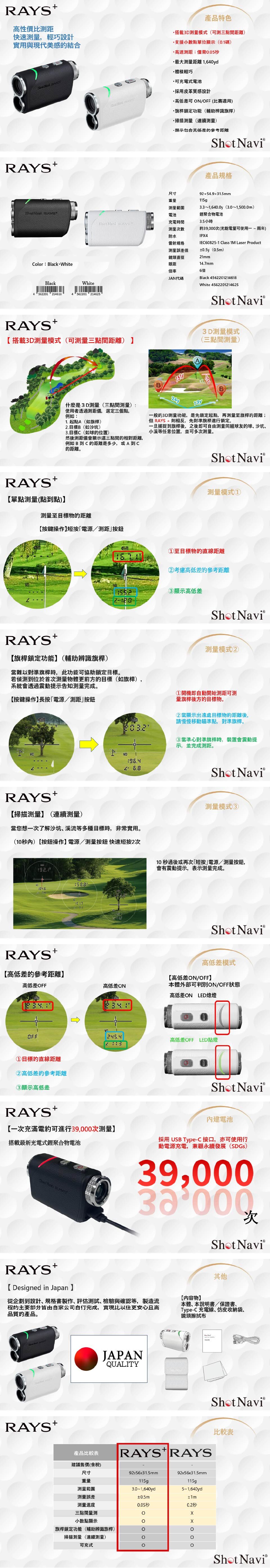 【日本品牌】Shot Navi RAYS+ 高爾夫雷射測距儀(黑)